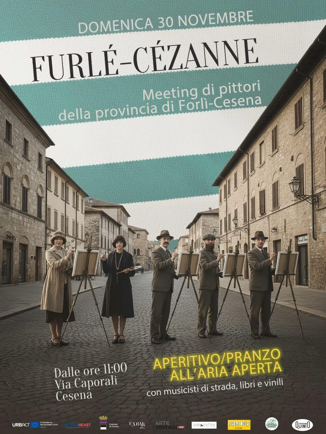 L’evento finale ‘Furlé/Cézanne’. Domenica 30 novembre, in collaborazione con ex bar Cristina, Piadamendola, Baricentro, Osteria Fondo, Quinto, Arte vintage shop, Adarc, si terrà l’evento conclusivo del progetto Cities@Heart, intitolato ‘Furlé/Cézanne – meeting di pittori della provincia di Forlì-Cesena’. Nel corso dell’evento l’Amministrazione comunale presenterà il percorso svolto nei due anni di progetto, verrà poi inaugurata la nuova installazione e si festeggerà insieme agli stakeholder e alle attività commerciali che hanno contribuito al processo. Non mancheranno inoltre musicisti di strada, libri e vinili. L’evento inizierà alle ore 11:00.