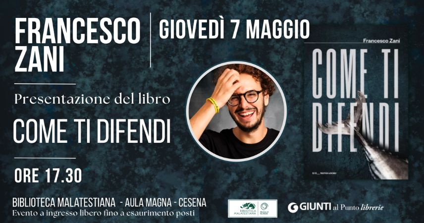 Giovedì 7 maggio, alle ore 17:30, l’Aula Magna della Biblioteca Malatestiana ospiterà la presentazione del nuovo romanzo di Francesco Zani ‘Come ti difendi’ (Mondadori, 2026). L’ingresso è libero fino a esaurimento posti. L’incontro vedrà l’autore dialogare con Stefano Maldini, offrendo al pubblico un’occasione per approfondire i temi e le suggestioni di un’opera che intreccia memoria, identità e destino. L’evento è a cura della Libreria Giunti al Punto di Cesena, in collaborazione con la Biblioteca Malatestiana.