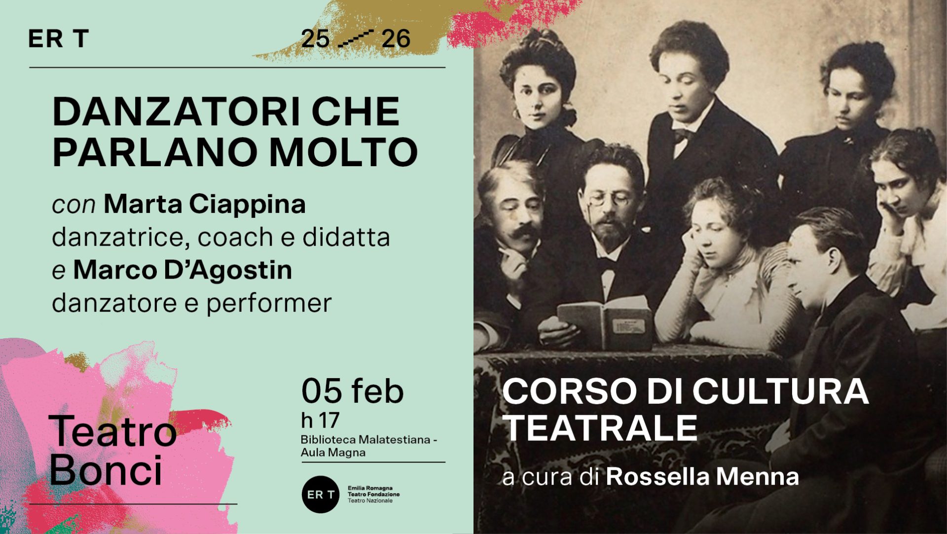 Cesena diventa uno dei centri di riferimento di un nuovo percorso di formazione dedicato al teatro contemporaneo e alla scuola. Prende il via quest’anno un corso di cultura teatrale promosso da ERT/Teatro Nazionale, ideato e condotto dalla critica e studiosa Rossella Menna, rivolto ai docenti delle scuole di Modena, Bologna e Cesena.