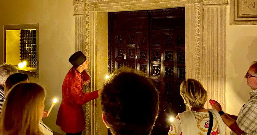 I Notturnali sono un’esperienza di viaggio nel tempo e nello spazio, non solo per la suggestiva visita a lume di candela: sarà infatti il Signore di Cesena Domenico Malatesta Novello ad accogliere i visitatori per raccontare e far conoscere la Biblioteca, suo inestimabile dono alla città. Dunque, attraverso un gioco teatrale, basato su equivoci di spazio e di tempo, ma attento a riportare una corretta e documentata narrazione storica, l’attore-guida Paolo Summaria tornerà a vestire i panni del signore di Cesena e condurrà la visita negli spazi della Biblioteca, illuminati per l’occasione dalla luce calda e morbida delle candele. Un viaggio tra il reale e il fantastico, insomma, in cui i confini della storia e della fantasia si sfioreranno nella penombra di un luogo tanto antico quanto emozionante.
