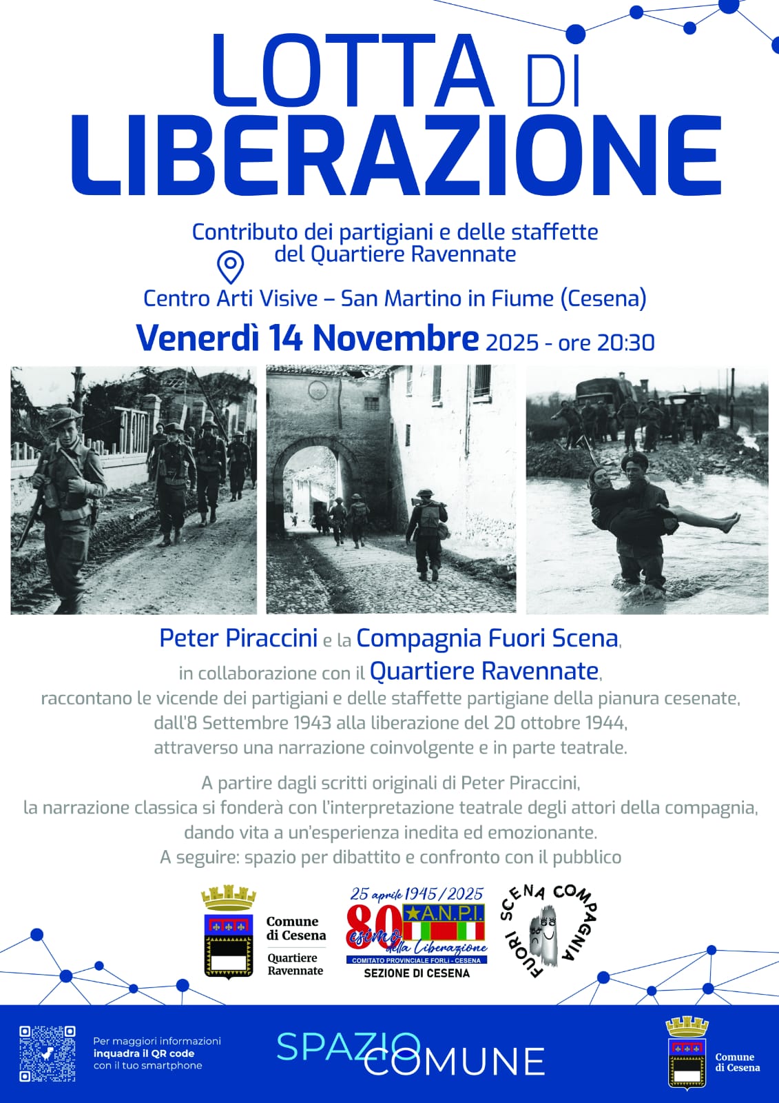 Venerdì 14 novembre, alle ore 20:30, al Centro Arti visive e sceniche di San Martino in Fiume (via Fusconi, 59) andrà in scena l’evento ‘Lotta di Liberazione. Il contributo dei partigiani e delle staffette della periferia’ a cura di Peter Piraccini e la Compagnia Fuori Scena.